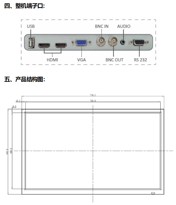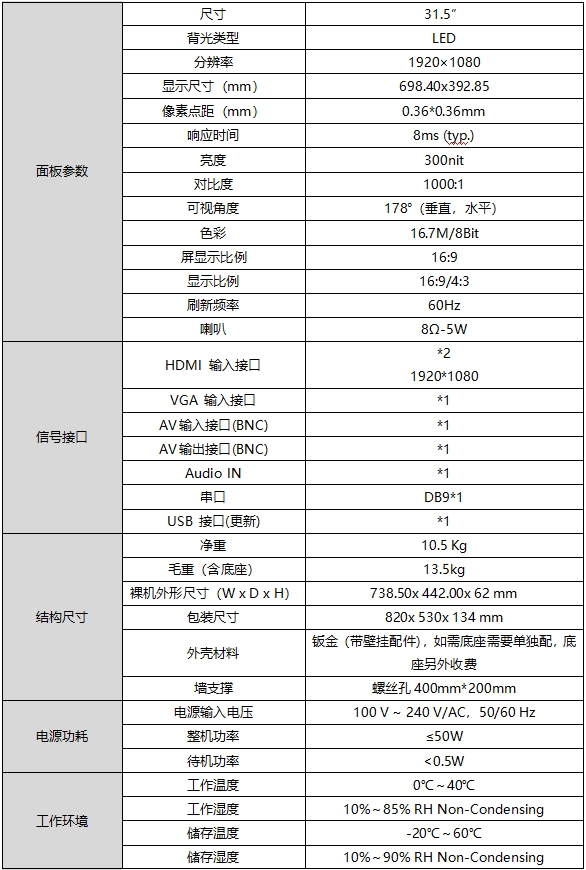 BMN32-0325J,32寸液晶监视器采用侧入式ELED背光源,显示亮度更均匀,色域更广。工业级外观设计,具有超高可靠性和高稳定性,平均无故障运行时间超过30000小时。接口丰富,集成HDMI、VGA、BNC等多路视频信号源。