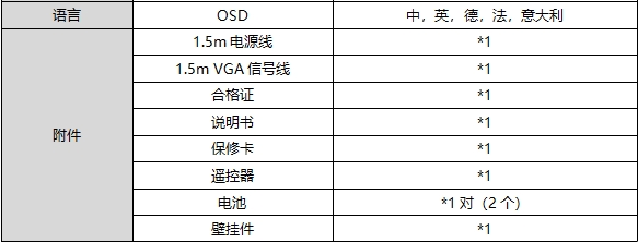 · 内含电源线,VGA线等配件