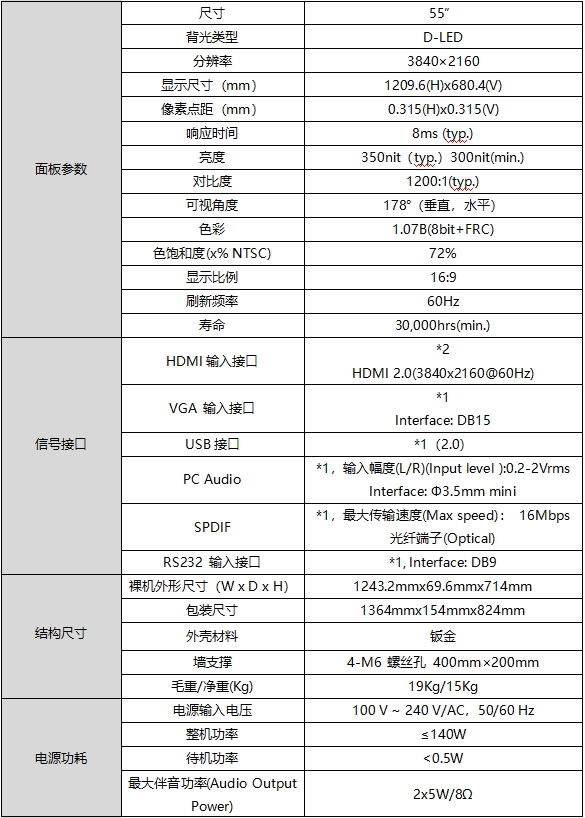 BMN55-0447 55寸监视器,采用国际知名品牌液晶面板,超高清3840*2160分辨率,低功耗,广视角。直下式LED背光源,显示亮度更均匀,色域更广。工业级设计,具有超高可靠性和高稳定性。接口多样,支持多种信号源.。