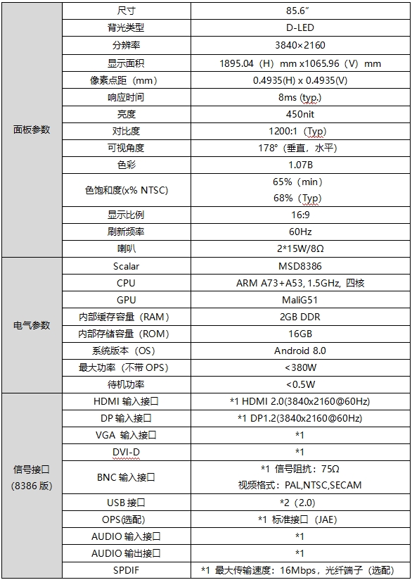· 四等边设计,隐藏式红外接收,可选配插拔式OPS电脑,超强质感;